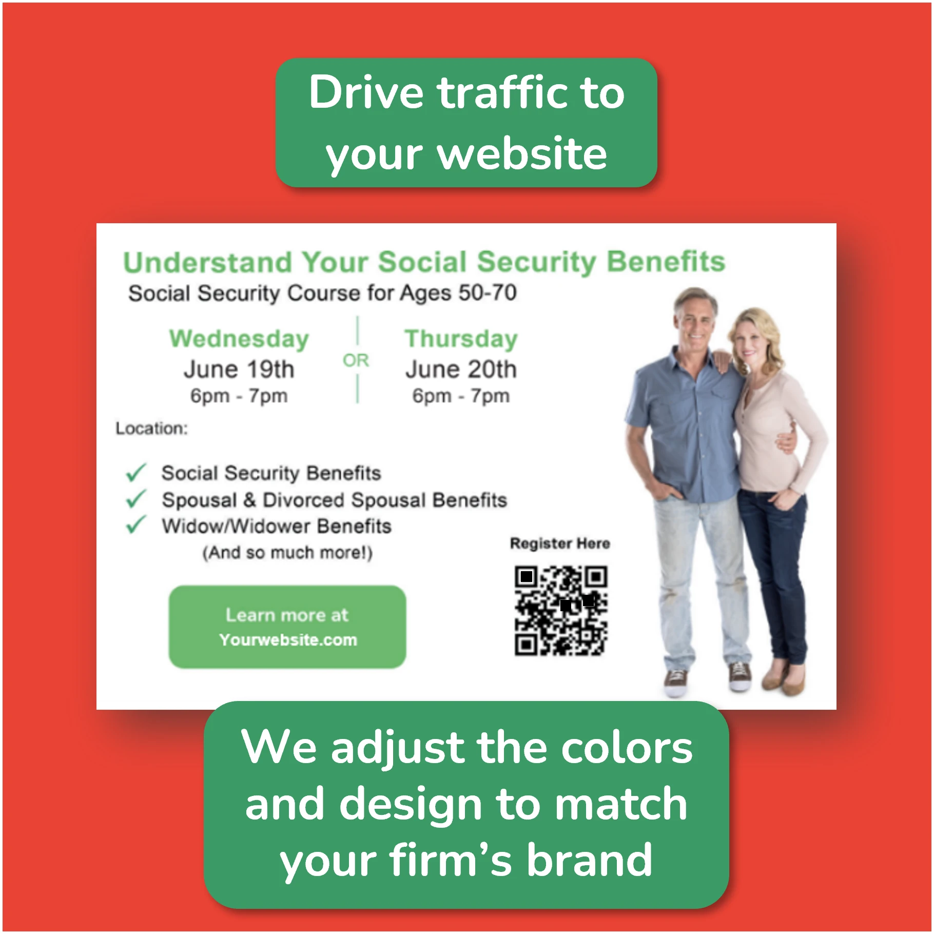 Choose from our 9 seminar topics to prospect to HNW pre-retirees in your community. Custom options also available.